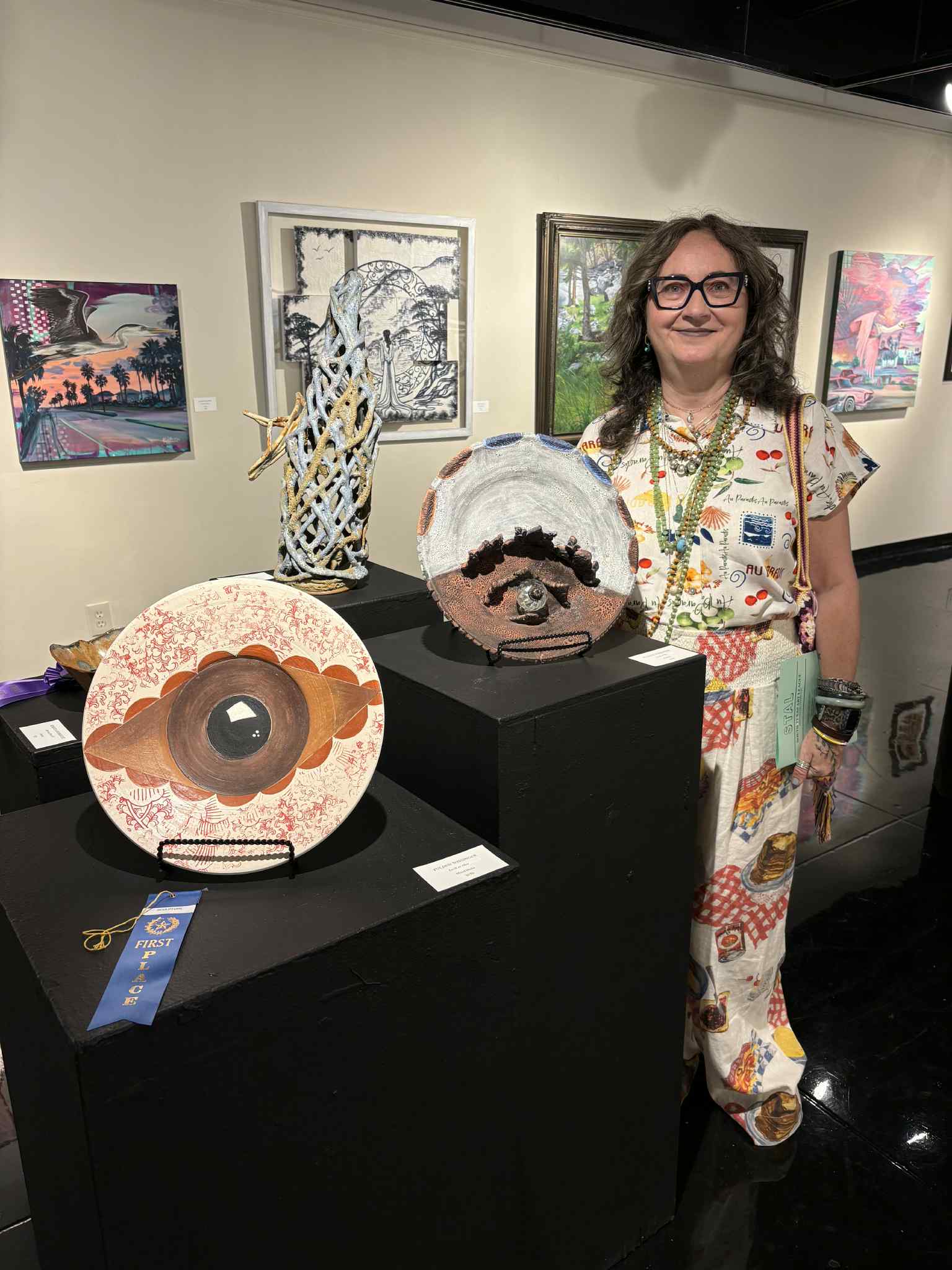Wissinger won first with her piece “Look at Me XI” and Ramirez won second with his piece “Forbidden Nipple” in the South Texas Art League’s Summer 2025 Exhibition.