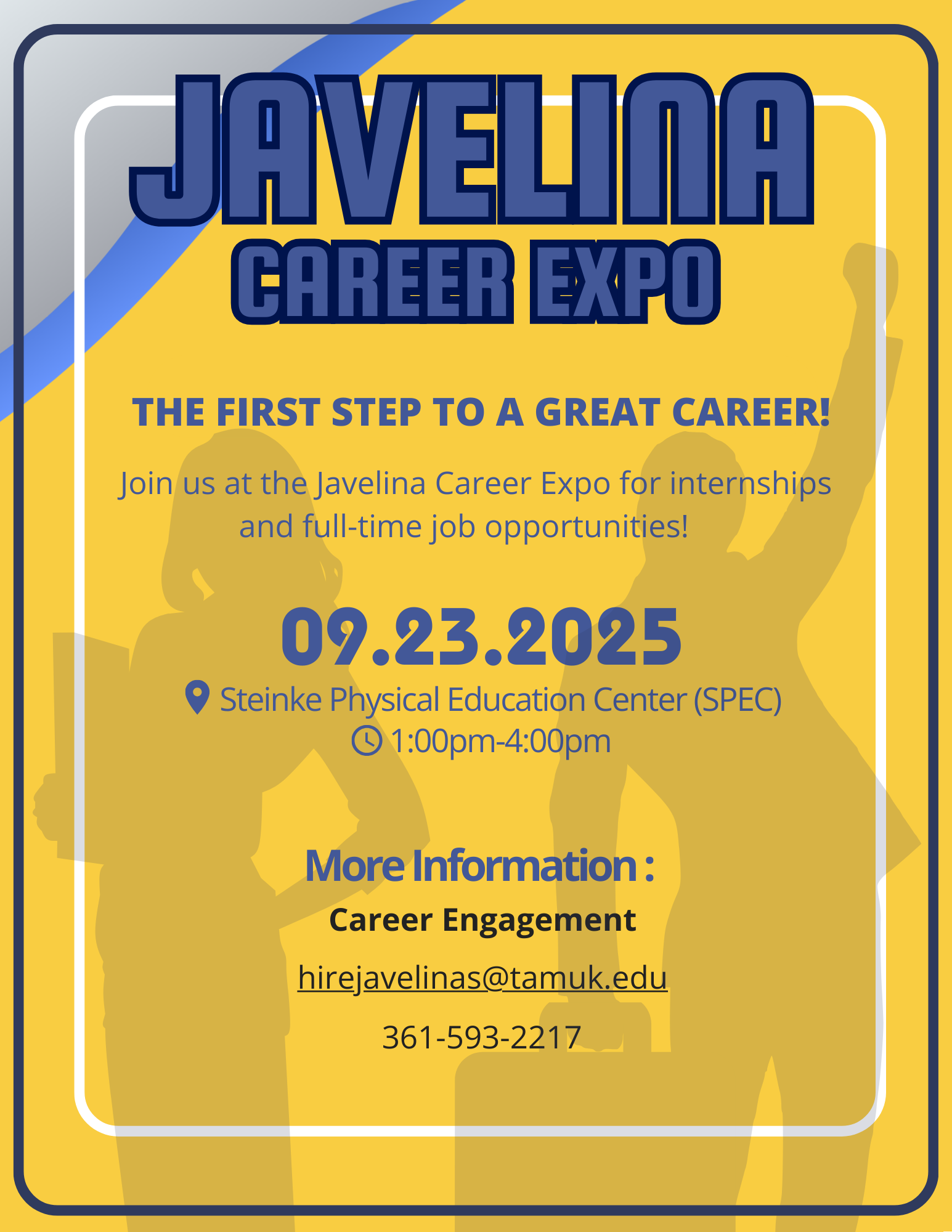 For those still interested in signing up for the Javelina Carrer Expo, registration is still available up to the event day, Sept. 23. For upcoming events or questions about resources contact the Career Engagement Center (361)593-2217.